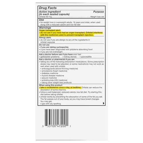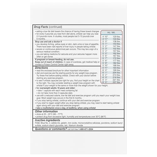 alli (orlistat 60 milligram capsules) is your smart edge for weight loss. Among weight loss products, it’s Orlistat, the active ingredient in alli, is a lipase inhibitor and works by binding to specific enzymes that break down fats. As a result, about 25 percent of the fat you consume is not absorbed and passes through the digestive system. Since the calories associated with this unabsorbed fat are not used, the number of calories that enter your system is reduced. You’re ready with alli by your side. alli (orlistat 60 milligram capsules) is a weight loss aid for overweight adults, 18 years and older, when used along with a reduced calorie and low fat diet. Read and follow label directions. alli orlistat 60 mg capsules weight loss pill refill pack (120 capsules) contains: A read me first brochure and up to 40 day supply. It is designed for people who are already using alli and have previously purchased the starter pack. Helps you lose more weight than dieting alone. Read the enclosed brochure for other important information. Diet and exercise are the starting points for any weight loss program. If you have a product concern or any other question, please refer to the phone number on the package to reach our customer service team directly. Satisfaction Guarantee If for any reason you are not satisfied with any GSK Consumer Healthcare product, GSK Consumer Healthcare will provide you with a reimbursement within 45 days of the date of purchase. Please note that because GSK is unable to control the quality of our products sold by unauthorized sellers, the Guarantee is not available for products purchased from unauthorized sellers due to potential quality issues outside GSK’s control. Please contact GSK Consumer Healthcare directly for more information. By Alli